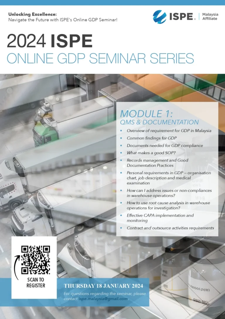ISPE Malaysia Affiliate is delighted to present to you our upcoming virtual seminar in year 2024.