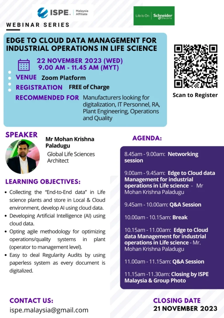 ISPE Malaysia Affiliate is delighted to present to you our last webinar for the year on the topic: